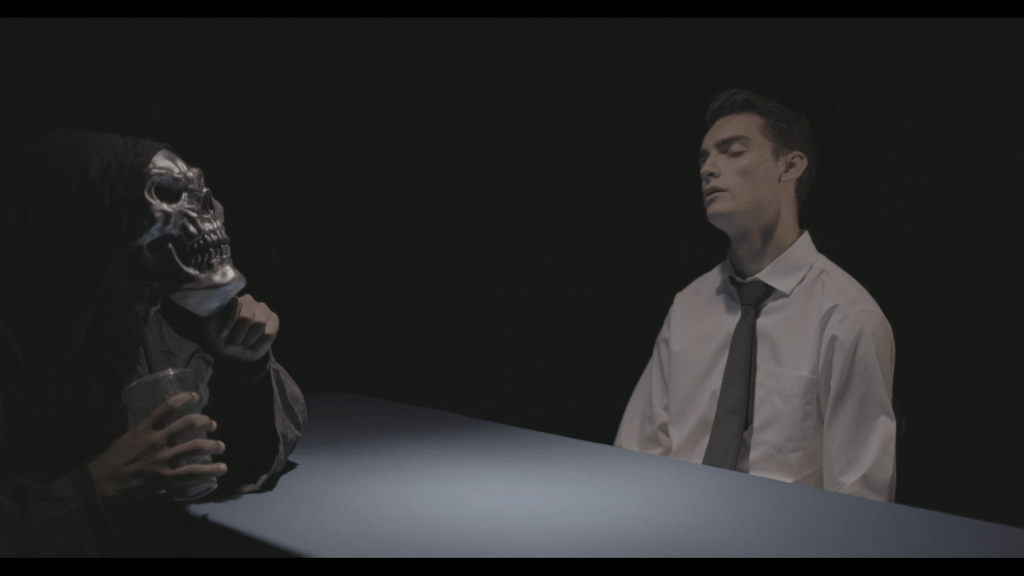 For this assignment, I was given several A-roll and B-roll footage and asked to edit the footage together to create a short scene sequence. This sequence follows a man who has recently died of car crash and is now being recruited by Death to work for Grim Industries, a company dedicated to procuring justice in the afterlife.